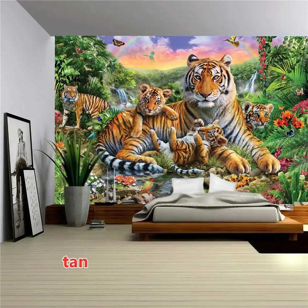 Натуральный дикий гобелен с животными лес тигра оленя натуральный гобелен с пейзажем настенный для общежития домашний декор