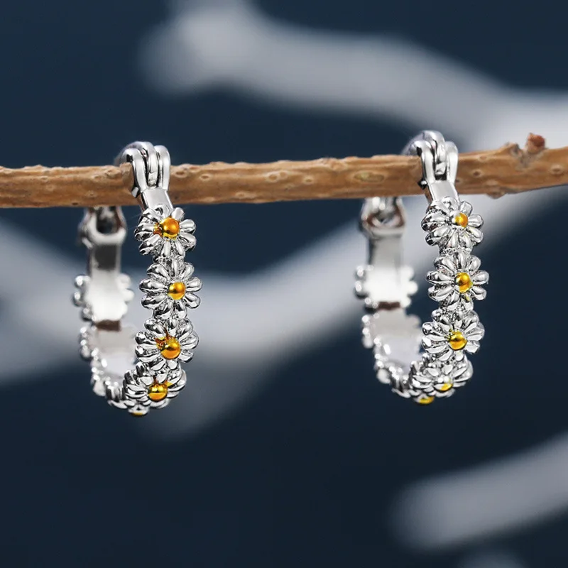 Новый 925 серебро ромашка серьги-кольца для женщин; Простые Стильны...