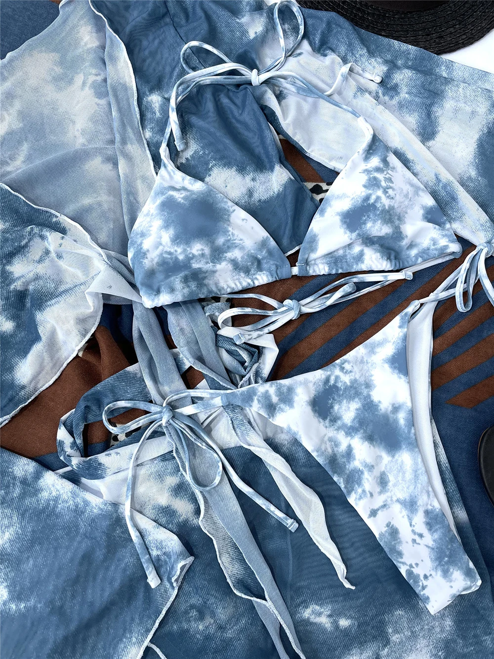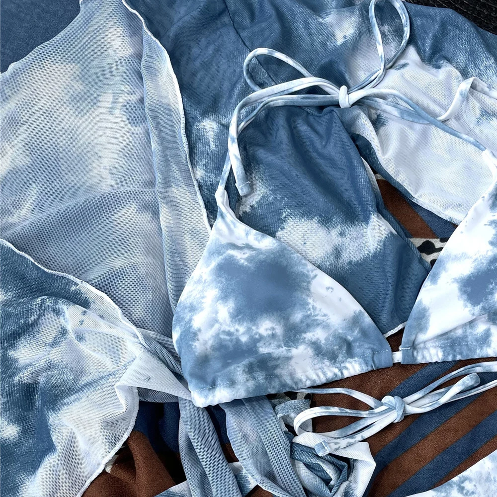 Бикини In-X Tie die 2021, купальник с длинным рукавом, женская юбка...