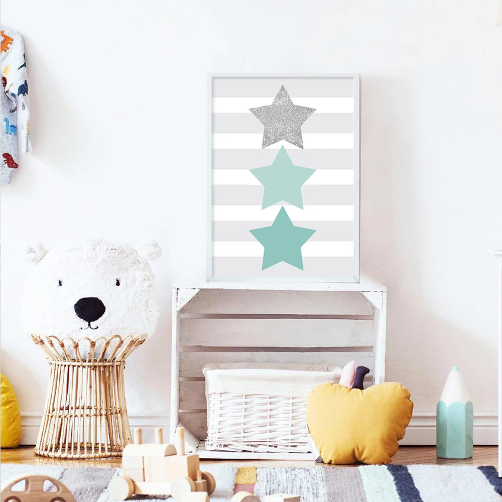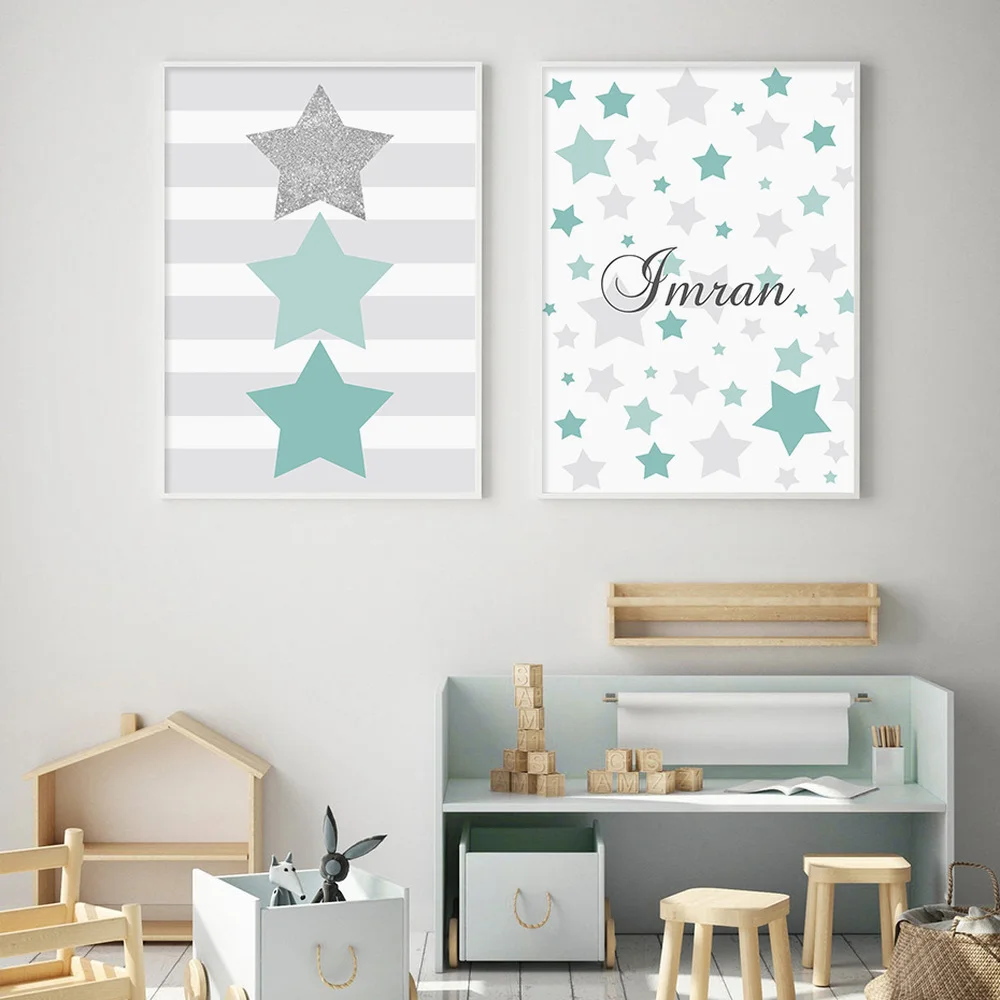 Мультяшные мятно-зеленые звезды детские постеры с именем на заказ д...