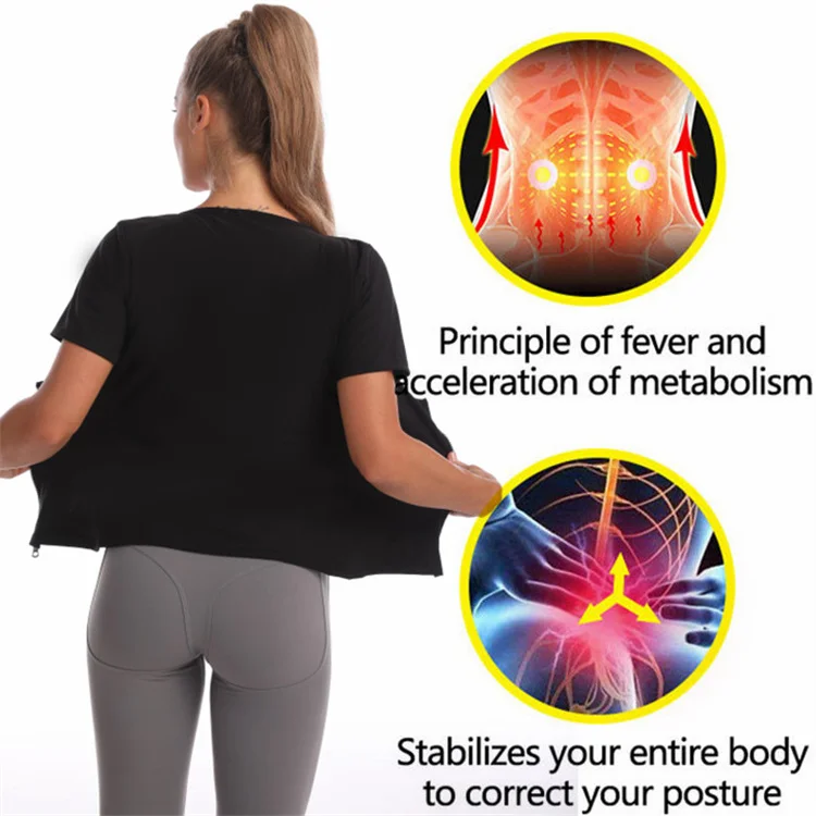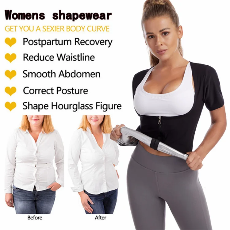 Женский костюм-сауна на молнии с коротким рукавом, моделирующая рубашка для похудения, тренировочный корсет для талии, майка для фитнеса, жилет
