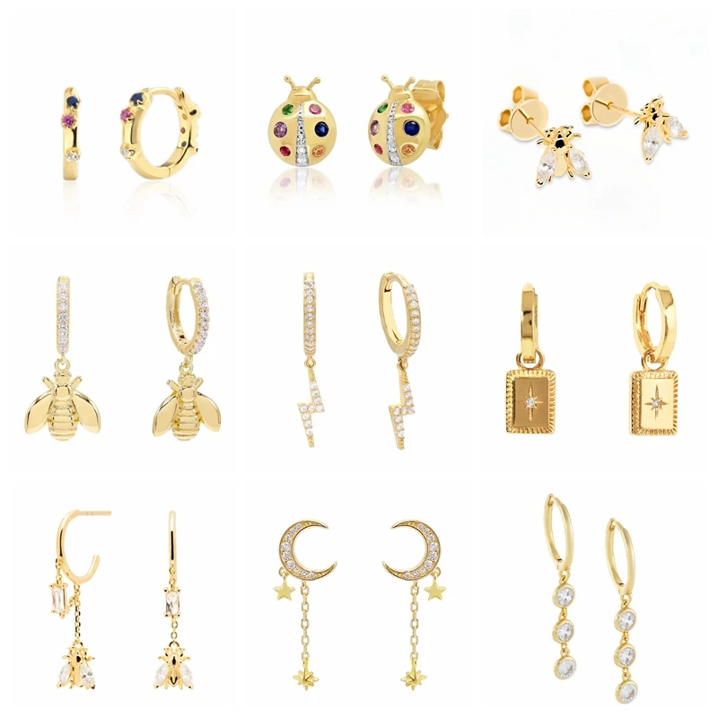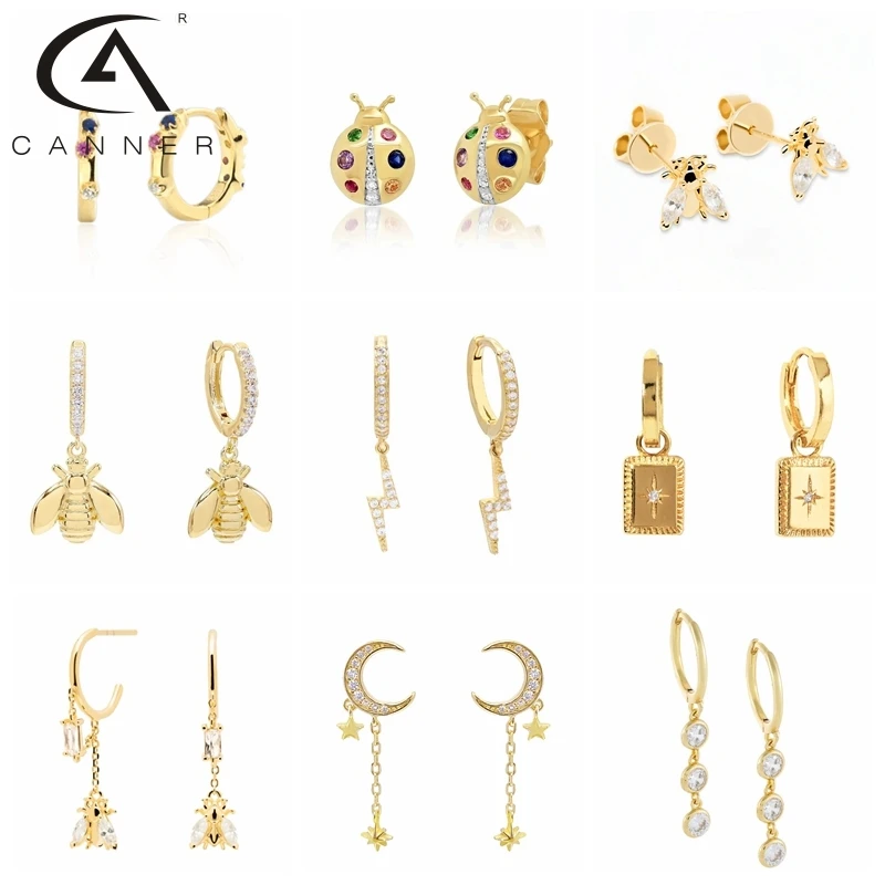 Женские золотые серьги CANNER, пирсинг кольцо с насекомыми, звездами, луной, уникальные ювелирные украшения на подарок
