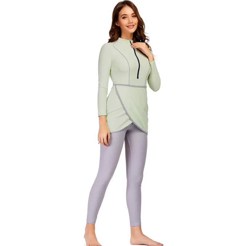 Женский скромный купальник на молнии, с длинным рукавом и молнией