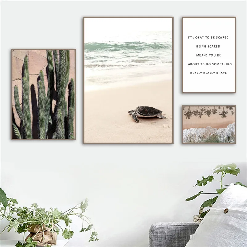 Настенный постер с изображением оранжевого пляжа и кактуса в сканди...