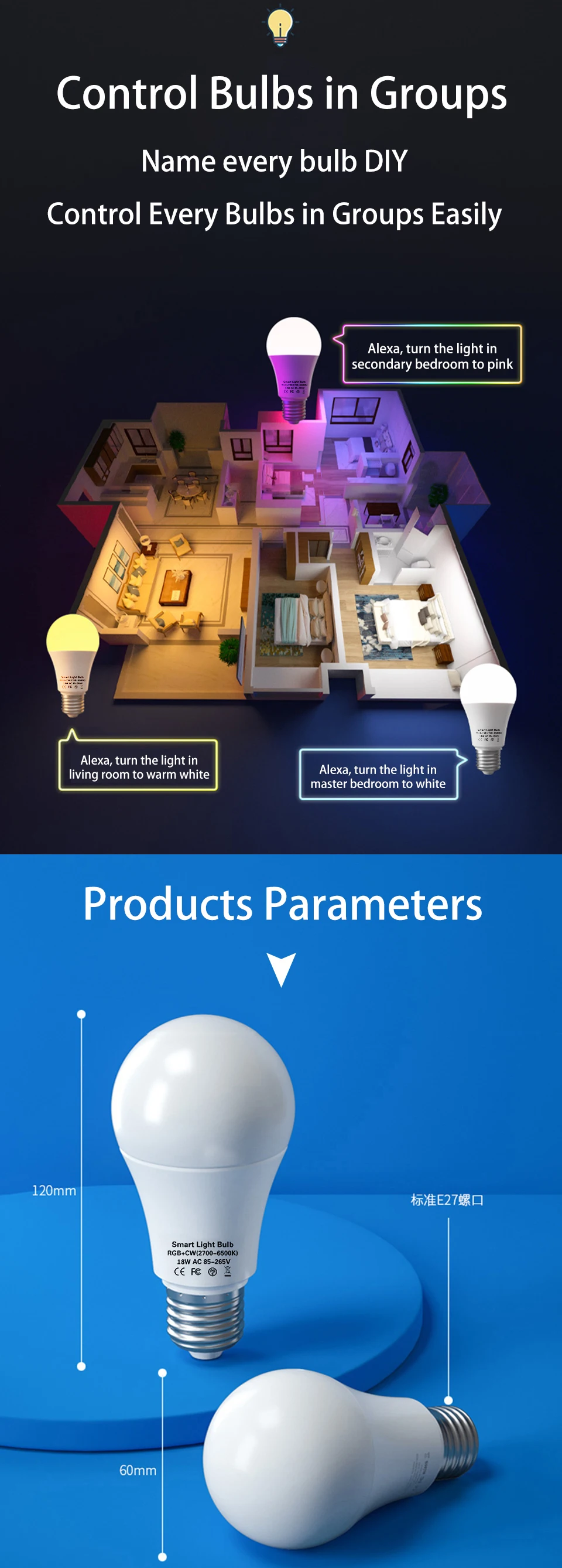 Спецификация:Тип: светодиодный смарт-лампочка Tuya WiFiФункция: Голосовое управление, дистанционное управление с помощью приложения, регулировка яркости, Совместимость с Amazon Alexa Echo Google Home Assistant, IFTTTСветильник цвет: RGB + теплый белый + белый (2800K-6500K)Тип гнезда: E27Мощность: 12 Вт/15 Вт/18 ВтНапряжение: 85-265 В переменного токаCRI: >85Загрузка приложения: Smart Life / Tuya SmartСеть: 2,4 ГГц Wi-FiОсобенности:1. Голосовое управление: простое Голосовое управление всеми умными лампами-светильник с помощью интеграции с Amazon Alexa Echo или Google Home Assistant.2. Контроль времени: никогда не Возвращайтесь домой в темный дом-используя светильник в приложении и получайте теплый светильник.3. Пульт дистанционного управления и групповые Управление: Не допускайте попадания воды подключив этот Wi-Fi умный светильник лампочка с вашей домашней сети (поддерживает только 2,4 ГГц Wi-Fi), вы можете удаленно Управление умный Светильник лампы на вашем смартфоне имитации в тех случаях, когда вы выходите из дома. Функция группового управления позволяет управлять более чем одной умной лампой-светильник одновременно для настройки сцены.Как подключить умный светодиодный светильник TUYA:1. Загрузите приложение «TUYA smart» на свой смартфон.2. Зарегистрируйтесь и войдите в приложение «TUYA smart» на вашем телефоне.3. Включите, а затем выключите лампу, повторите ее 4-6 раз, убедившись, что она включена в режим быстрого мигания (около 5 раз за 2 секунды). Это важно, потому что сеть с именем «TUYA smart» появляется только при мигании лампы.4. Откройте приложение --- нажмите «+», чтобы добавить устройство --- нажмите «светильник мигает» ---- выберите сеть содержит '2.4G' вместо '5G' ---- введите пароль и введите --- нажмите «подключить» --- выберите «TUYA smart' сеть --- нажмите «следующий шаг», подождите, пока полностью подключено --- нажмите на устройство «светильник» --- нажмите « Мое устройство» и выберите его.Примечание: Если у вас нет сети 2,4G дома, вы можете поделиться подключением к точке доступа на вашем телефонеВидео ссылка для инструкции по продукту:Https://drive.google.com/file/d/1xGmgJrx6RW_MHGbDmG31BXXtPnmrnycX/view?usp=sharing