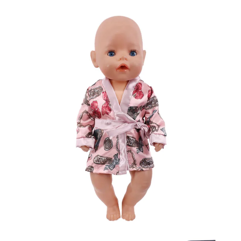 Одежда для кукол, банный халат, комплект пижамы для девочек 18 дюймов американская кукла для девочек 43 см для ухода за ребенком для мам Новый Reborn Baby Doll поколения с принтом смайлик аксессуары