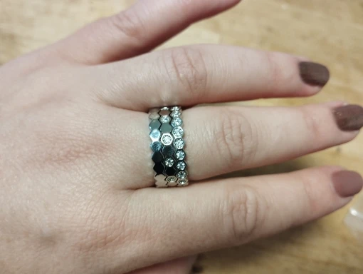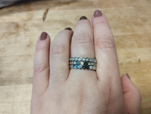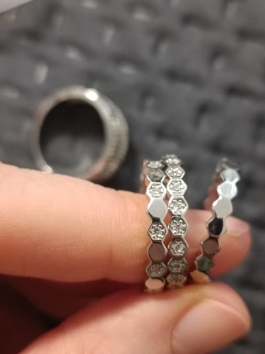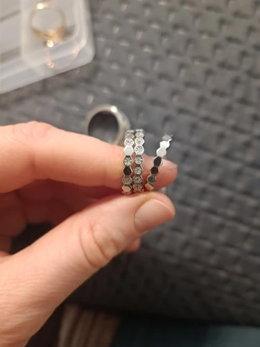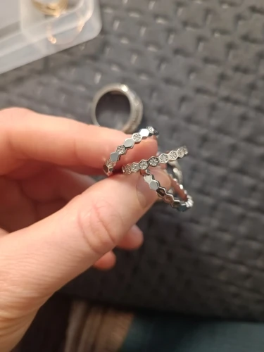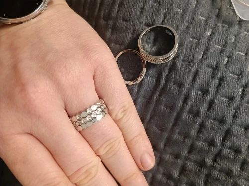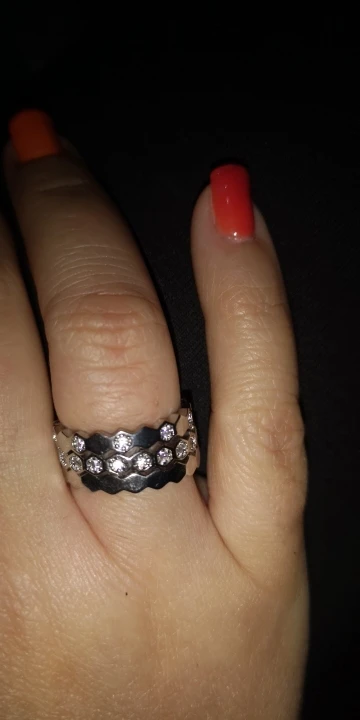 Очень аккуратные кольца, блестят хорошо, тяжеловаты 3 разом если, ощущаются на пальце, думаю, что не серебро. Но красиво, ошиблась чуть с размерами, закажу еще правильного размера.