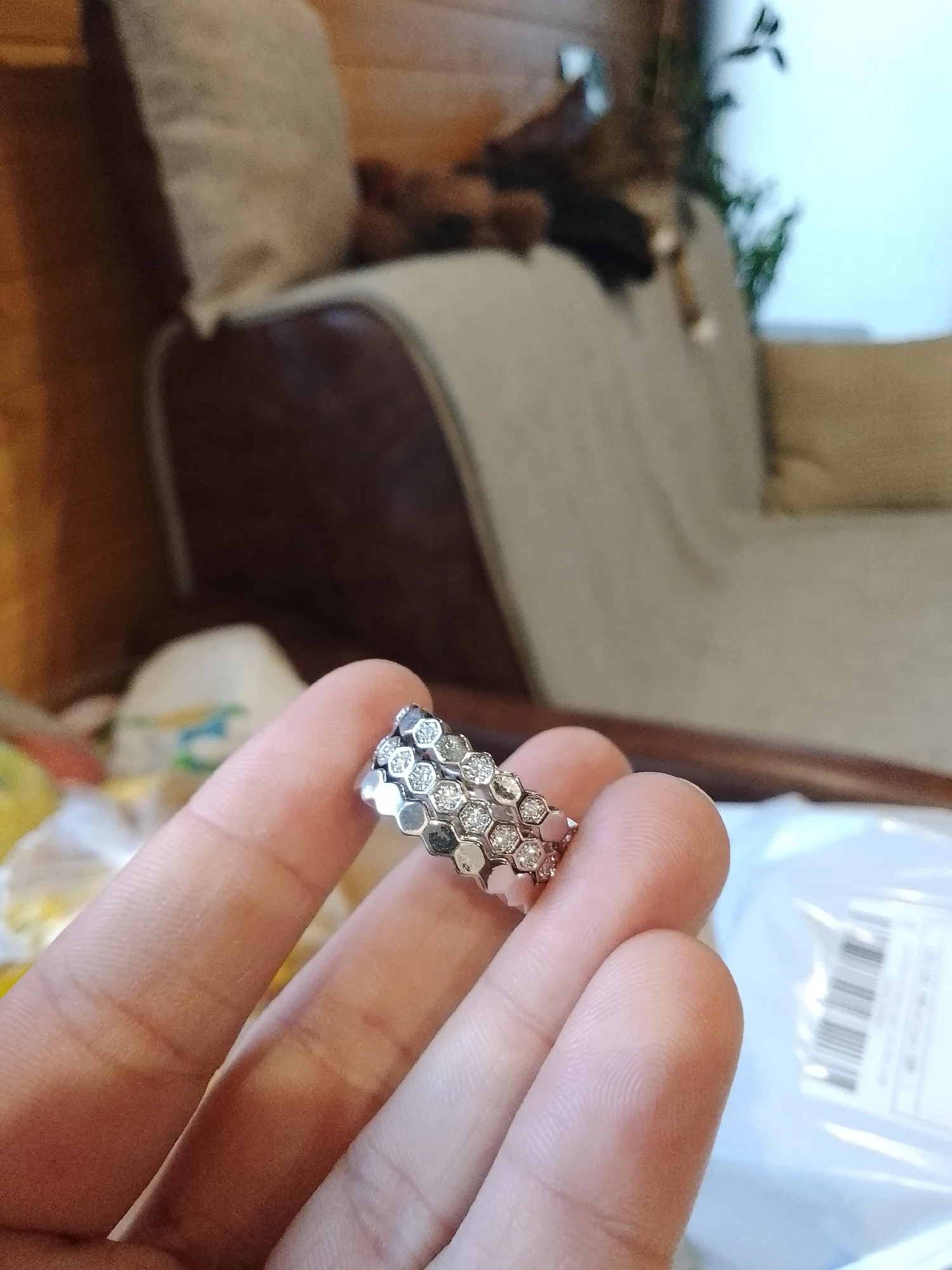 Очень мило кольцо, но не 'т выглядеть так же, как рис. Сотовый дизайн't такой же острый и определенный, как на фотографиях, но по @-@ прежнему очень милый по цене, и я буду носить его часто