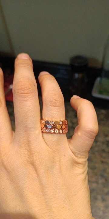 Красивые кольца. Как в описании. Заказал размер 9, и они были очень плотными по сравнению со всеми моими кольцами другого размера 9. Не стоит открывать спор/возвращать 3 $3 кольца, следовательно, 4 из 5 звезд.