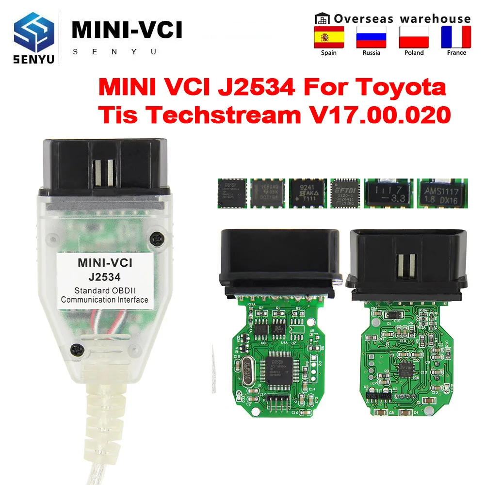 MINI VCI для TOYOTA TIS Techstream V17.00.020/V16.00.017 mini vci FTDI для J2534 OBD OBD2 автомобильный диагностический автоматический сканер инструмент MINI-VCI кабель