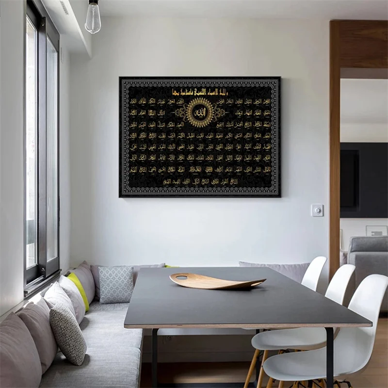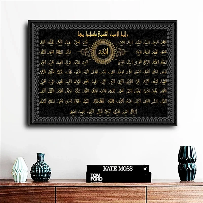 Исламское искусство с 99 именами Аллаха, печатная картина, мусульманская мечеть Рамадана, Настенная картина, украшение для гостиной, постер