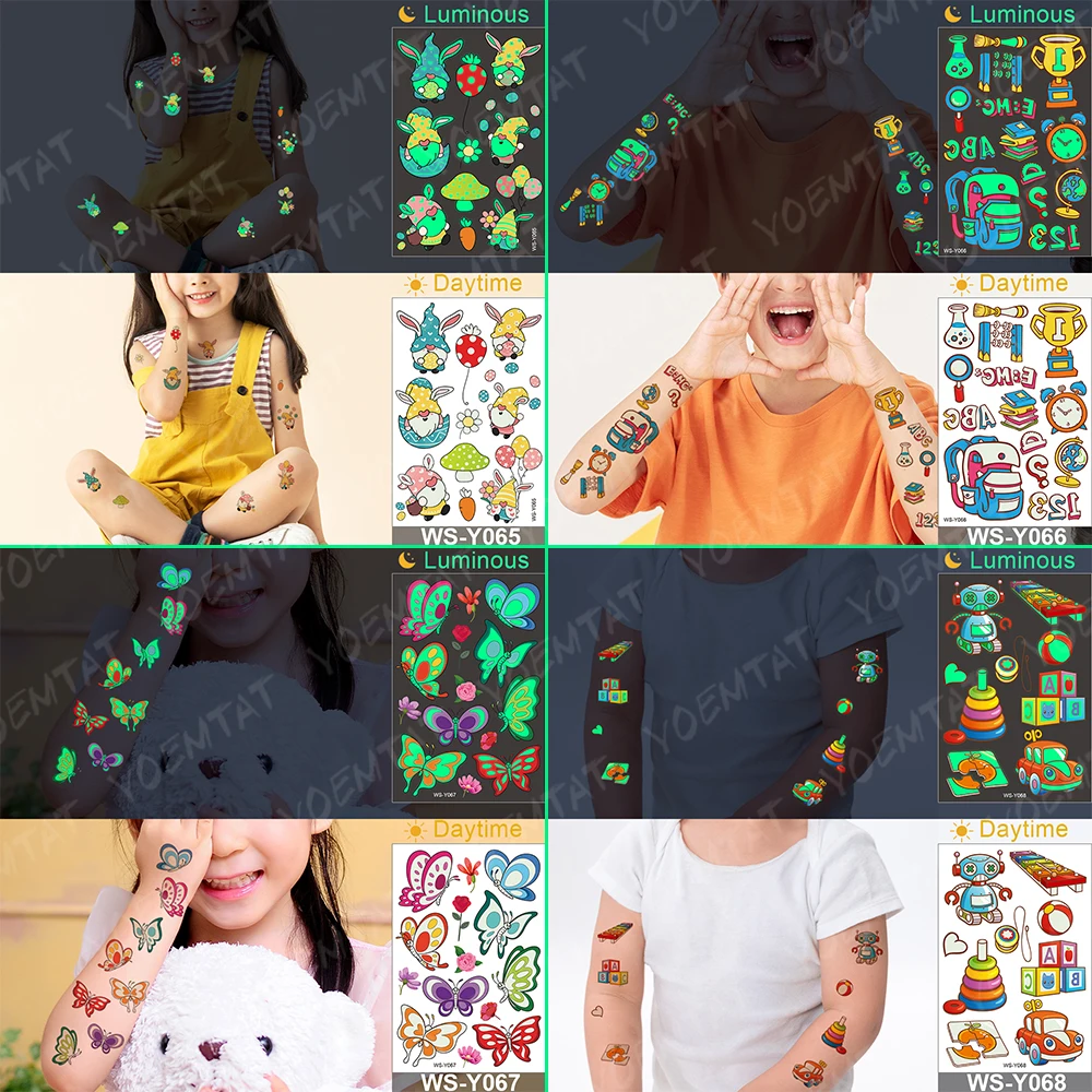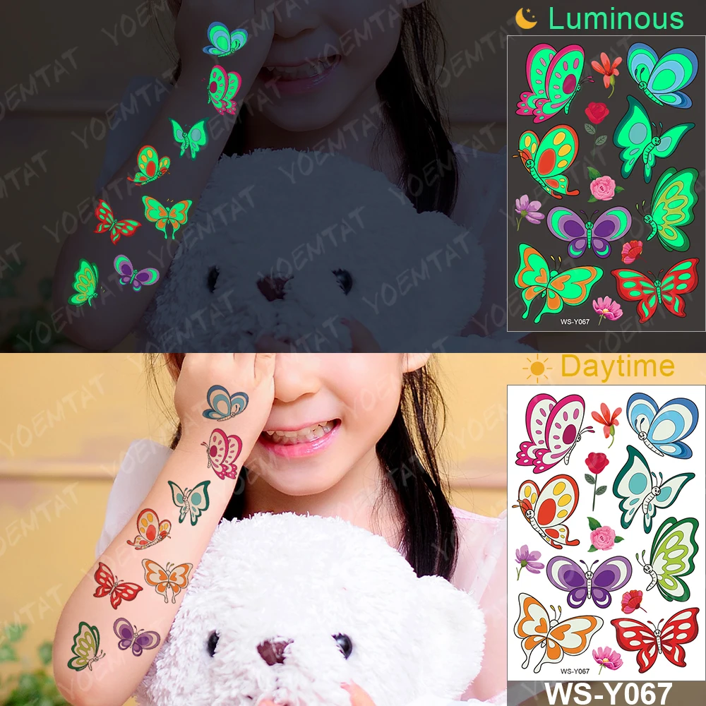Светящаяся водостойкая Временная тату-наклейка, осьминог, Кит, дельфин, океан, милая животная, светящаяся татуировка, детская рука, искусственная татуировка для детей