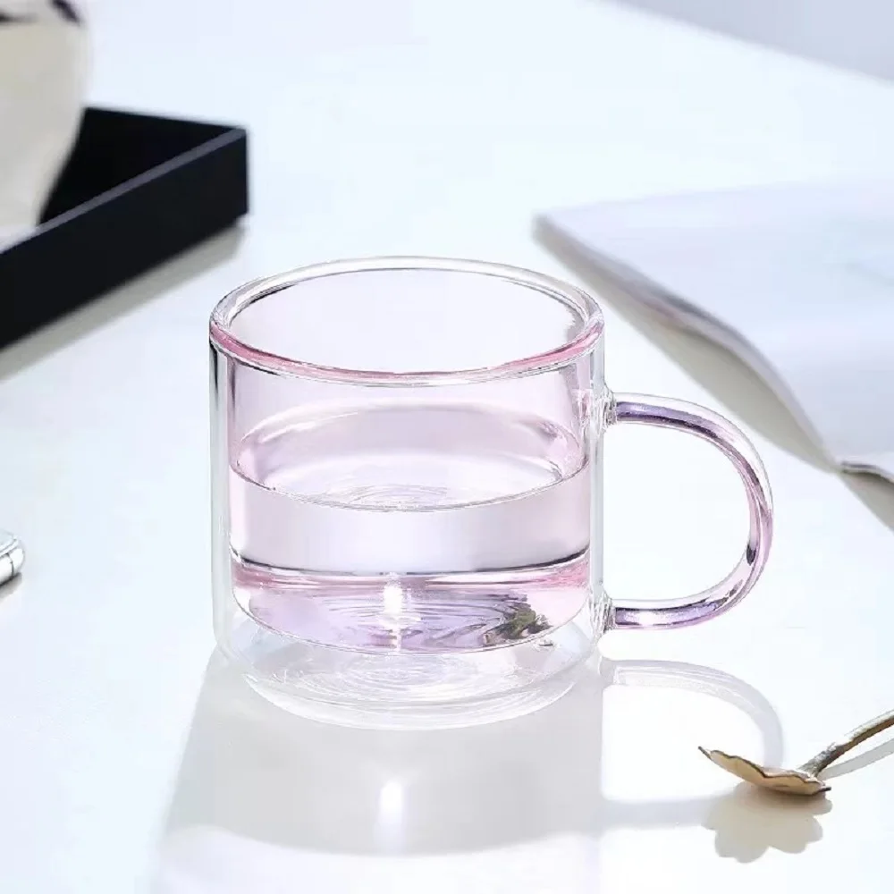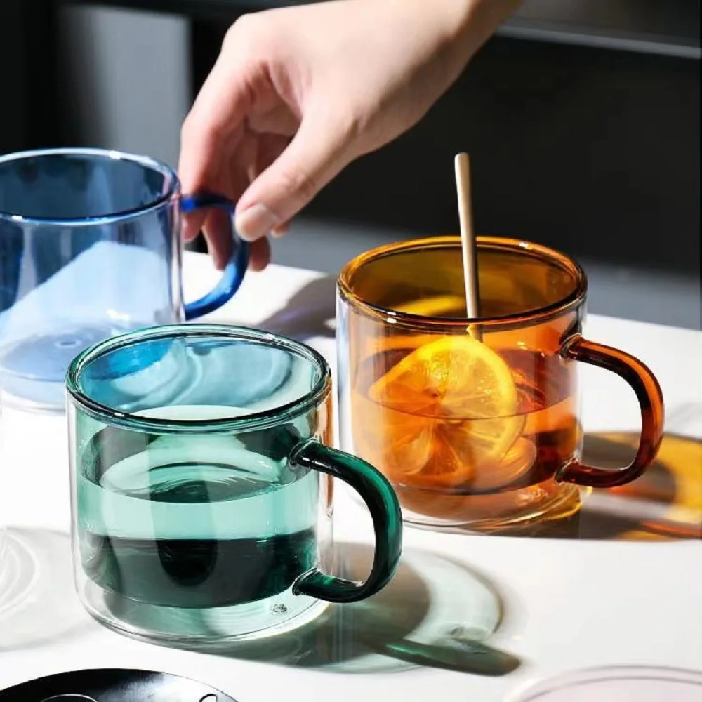 Двухслойная стеклянная чашка ed, домашняя цветная чашка из стекла, Офисная чашка для молока и сока, прозрачная и цветная, с теплоизоляцией