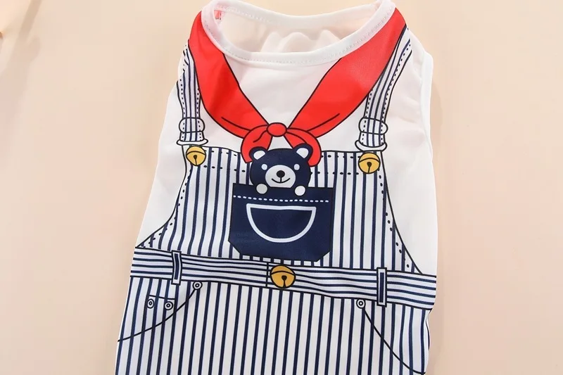Жилет для собак в полоску с мультяшным рисунком, летняя одежда для маленьких собак, футболка для чихуахуа, дешевая рубашка для щенков, одежда для йоркширского терьера, одежда для собак
