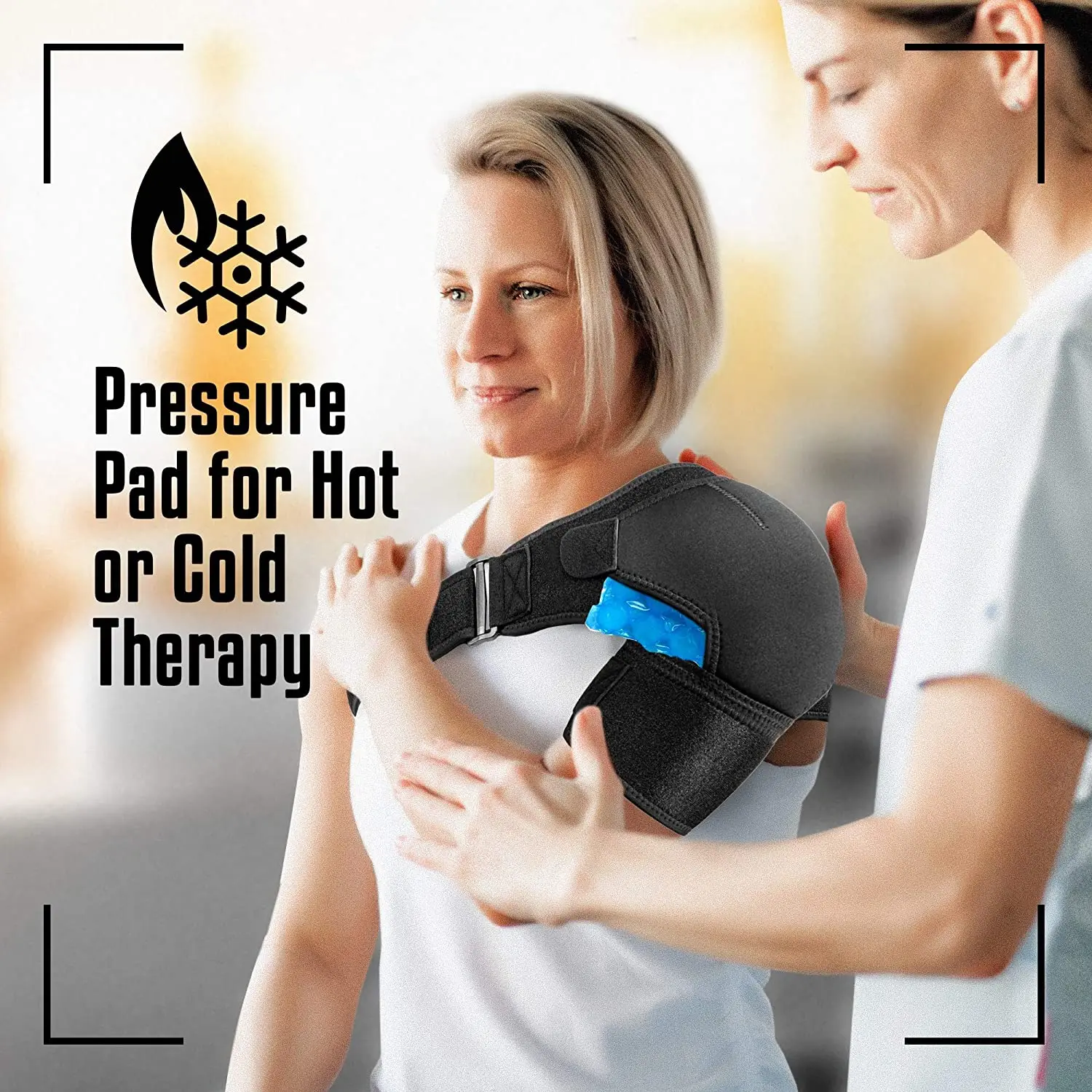 Поддерживающий наплечный бандаж для мужчин, женщин и мужчин, регулируемая обертка, компрессия и стабильность с напорной накладкой, неопрен, для боли в плече, ледяной пакет