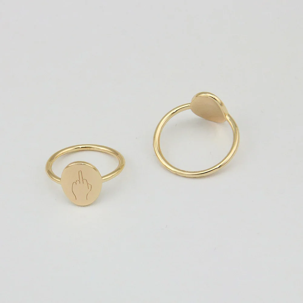 Минималистичное овальное позолоченное гравированное неопное ручное штампованное кольцо для женщин индивидуальное жесткое кольцо