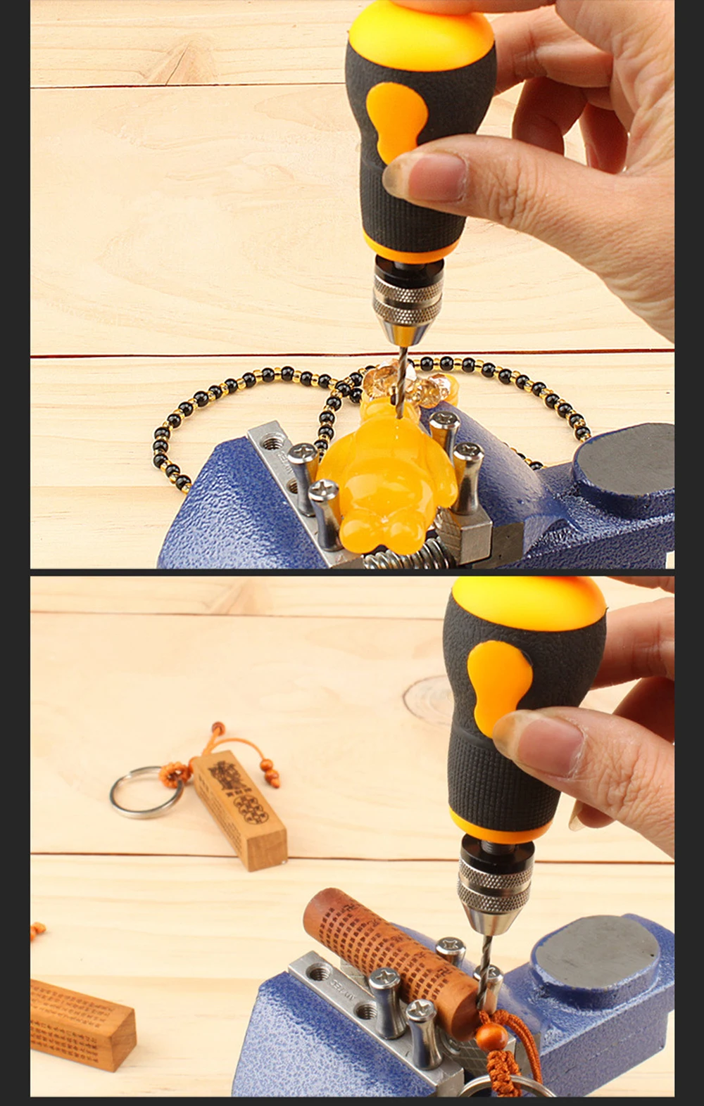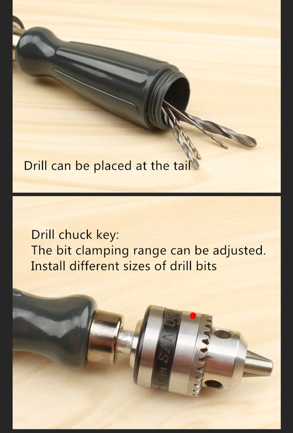 Характеристики продукта: Высокоточный Зажимной патрон, более прочный, без сверла, без скольженияИспользование продукта: подходит для ручного сверления дерева с небольшими отверстиями, bodhi, угол кости, янтарь, бриллиант, пластик оливкового цветаЯдро, грецкий орех и другие материалы.Меры предосторожности:1. Не подходит для твердых материалов, таких как агат нефрит, металл, стальная пластина.2. Носите защитные инструменты как можно больше, чтобы предотвратить несчастные случаи.3. Пожалуйста, держите направление силы всегда вертикально и равномерно вращаться, в противном случае это будет легко сломать сверло.4. Удалите сверло после использования.Инструкции по использованию:1. Не подходит для сверления отверстий в металлических материалах.2. Ручная скручивание, без скорости, без мощности, плохая стабильность рук, встряхнет влево и вправо, поэтому эффективность сверления низкая и уставшая, не подходит для партии буровых долот ниже.3,2 мм очень тонкий. При зажиме он должен быть зажат в центре трех уловов.Обратите внимание на прочность при сверлении, старайтесь избегать тряски влево и вправо, в противном случае легко сломатьСверло.