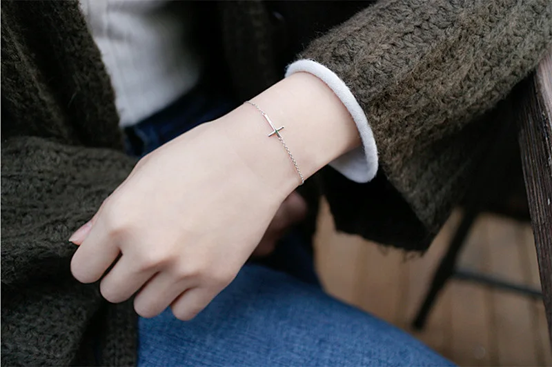 925 серебряный крест браслет для женщин, браслет с подвеской на зес...
