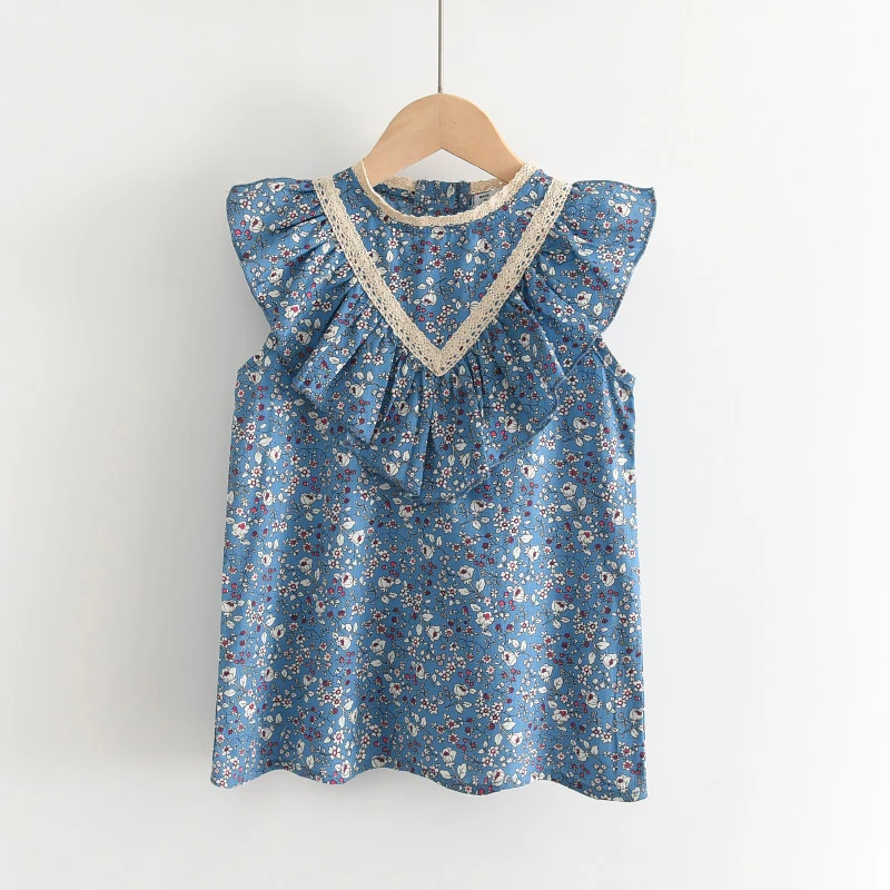 Детское летнее платье без рукавов, с цветочным принтом и оборками, От 3 до 7 лет