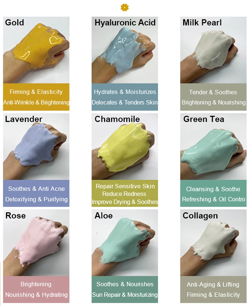 Доступны Натуральные маски для лица на английском языке.Растительные экстракты снимают маска-желе порошок с приятным дизайном!Без консервантов, без парабенов. Без минерального масла. Без жестокости.Беременные женщины могут использовать его.Подходит для: людей, которые ищут естественную, светлую и здоровую кожу, подходит для сухой, жирной и комбинированной кожи.Основная эффективность: очищение, глубокое питание кожи, увлажнение, успокаивание, восстановление и сужение пор.7 Масок Из пудры желе с разной эффективностью:Коллагеновая Порошковая маска: Антивозрастная, подтягивающая, укрепляющая и эластичнаяРозовая пудра маска: питающая, увлажняющая и осветляющаяПорошковая маска с молочным жемчугом: нежная, Успокаивающая, отбеливающая и питательнаяПорошок лаванды маска: детоксицирует и очищает, успокаивает и защищает от акнеПорошковая маска ромашки: успокаивает и восстанавливает чувствительную кожу, Уменьшает покраснения и улучшает сушкуПорошок Алоэ Маска: успокаивает и питает, восстанавливает и увлажняет солнцеПорошковая маска зеленого чая: Очищающая, Успокаивающая, освежающая и контролирующая жирностьКомплектация:1X250 г порошковой маски, можно использовать 8-12 процедур1 х Набор чаш с ложками, лопаткой и чашейПоддержка прямых поставок, оптовых и низких MOQ для вашей личной маркировки.Не пропустите, вы этого заслужили!