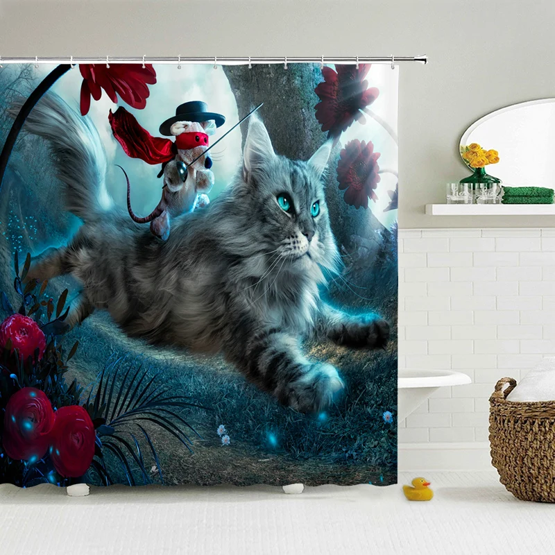Забавная душевая занавеска s занавеска с крючками для ванной комнаты, занавеска с крючками, декоративная Водонепроницаемая 3d занавеска для ванной с котом, собакой, 180*180 см, креативная индивидуальная занавеска для душа
