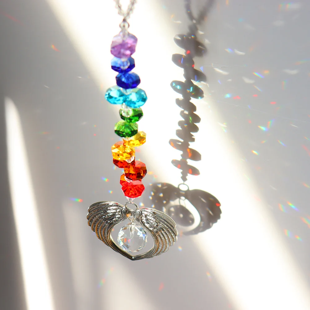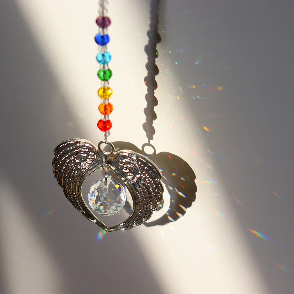 Кристаллические отражающие призмы с крыльями ангела, подвесные раду...