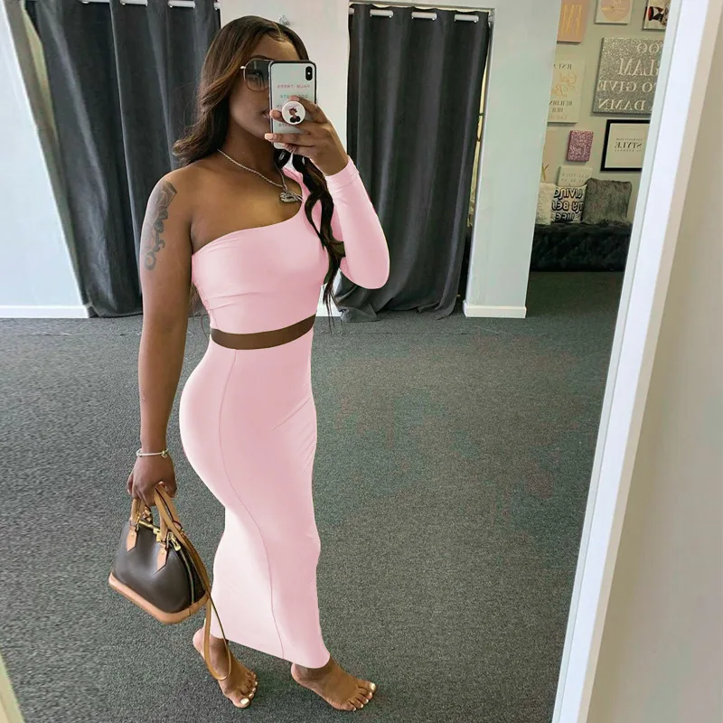 Комплект из 2 предметов с юбкой и укороченным топом на одно плечо с длинным рукавом, осенняя одежда для женщин 2021, модная сексуальная клубная одежда