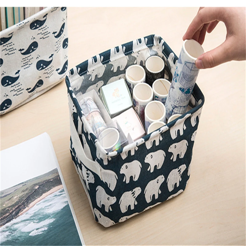 Портативная корзина для хранения, настольный органайзер для хранения косметики, Коробка Для Хранения нижнего белья, льняная Водонепроницаемая корзина для хранения с покрытием