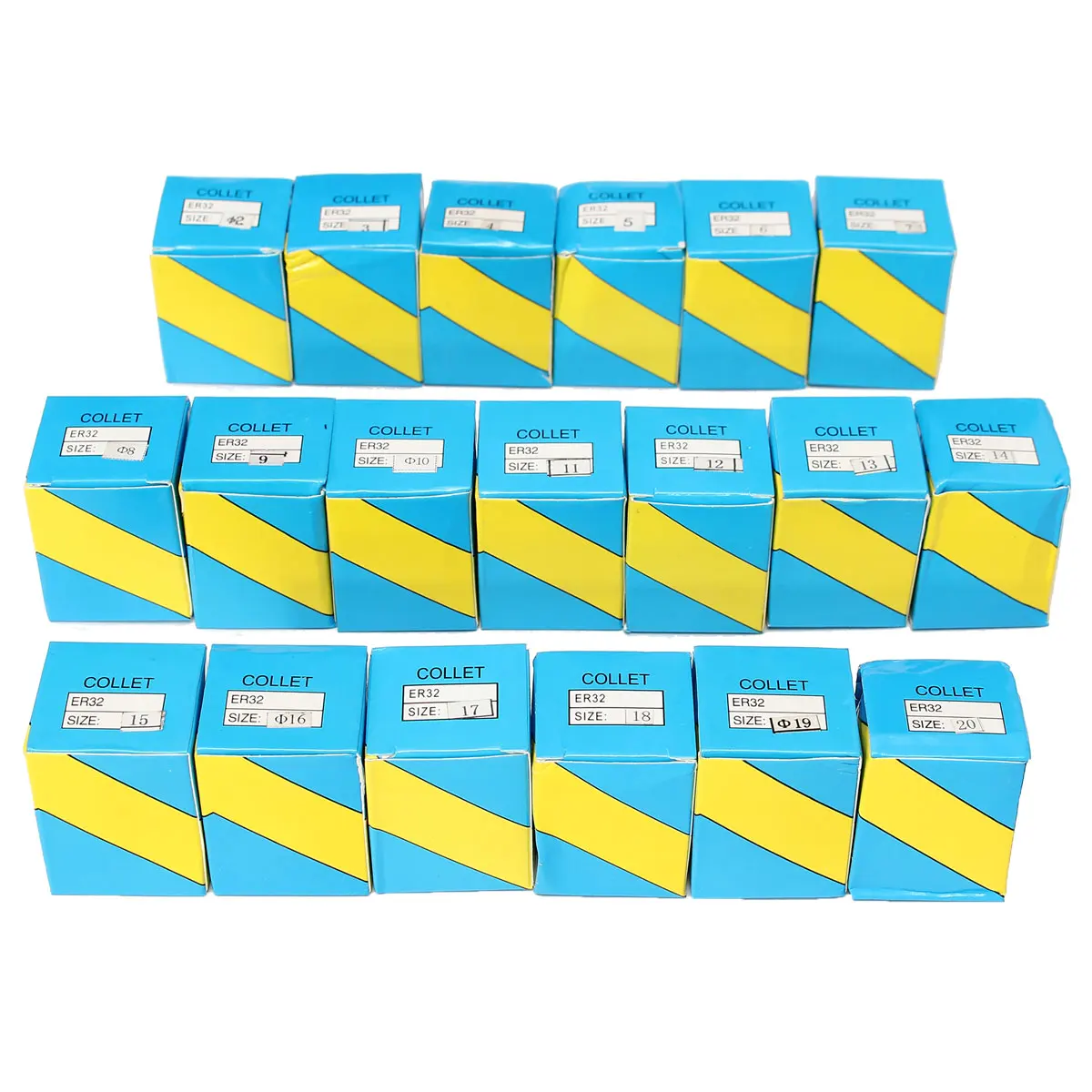 -[Диапазон зажима]: Точная пружинная Цанга ER32. 19 упаковок пружинных зажимов ER32 имеют следующие размеры: 2-20 мм. Аккуратный, хорошая гибкость, большая сила зажима, широкий диапазон зажима, высокая точность.