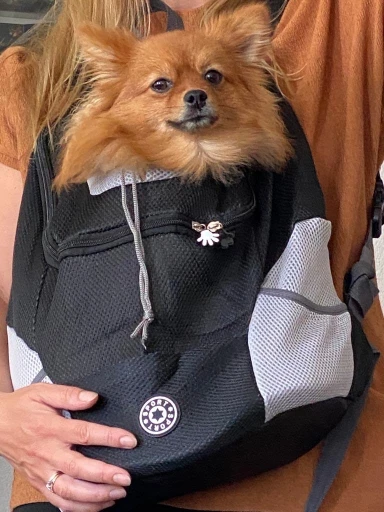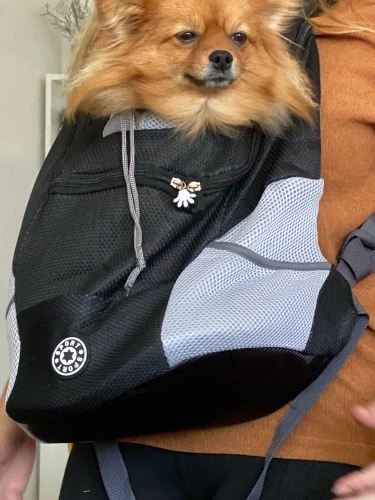 Заказ пришел за 13 дней. Рюкзак просто классный. Есть все что необходимо: удобный вход для собаки, страховочный карабин, три кармана, из которых один на замке, мягкая удобная спинка, поясной ремень. Все внутренние швы обработаны тесьмой. Хвосты лямок аккуратно заправляются. Материал двухслойный, но весь просвечивает - собаке летом будет не жарко. Вес рюкзака 455 грамм. Складывается очень компактно. Собаке очень понравился. Покупали размер "M" для померанского шпица весом