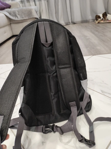 Рюкзак из самых дешевых материалов. Фурнитура также самая дешевая. На поясе не держиться вообще, разъезжается. При первом же использовании разъехалась молния, собрали обратно ). Насколько долго его хватит, покажет время. Сам рюкзак пошит достаточно хорошо, но фурнитура испортила всё впечатление. Ездили один раз с собакой, ей понравилось ) Для 5 кг пекинеса длиной по спинке 35 см , размер М подошел отлично