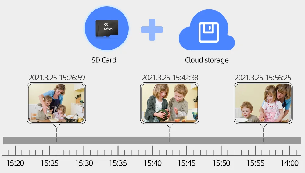 Камера поддерживает Локальное резервное копирование до 128 Гб TF карты, а также предоставляет Облачное хранилище (необходимо оплатить дополнительную плату)