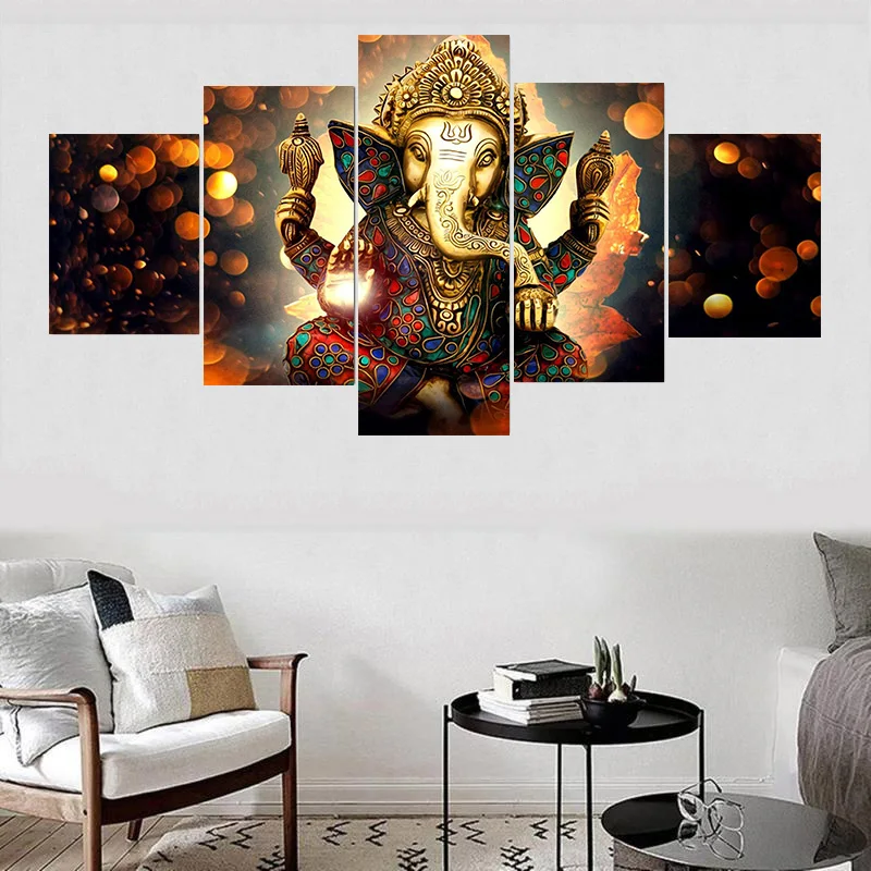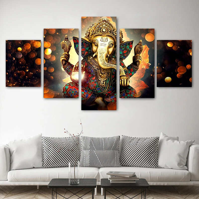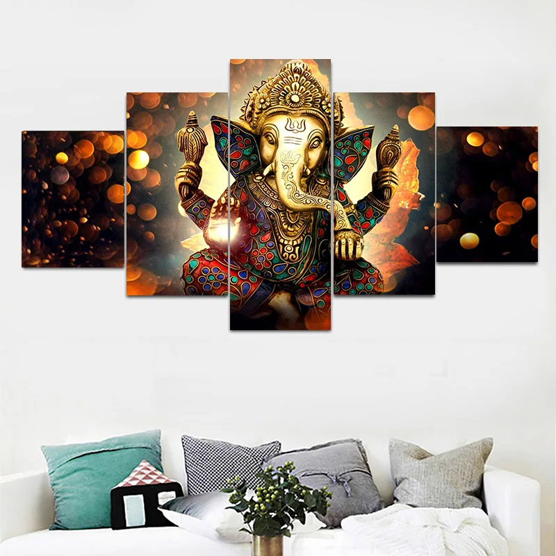 Скандинавские 5 панелейкомплект, индуийский Бог, Ганеш, слон, холст, печать, стена художественные плакаты и принты, гостиная, домашний декор, без рамки
