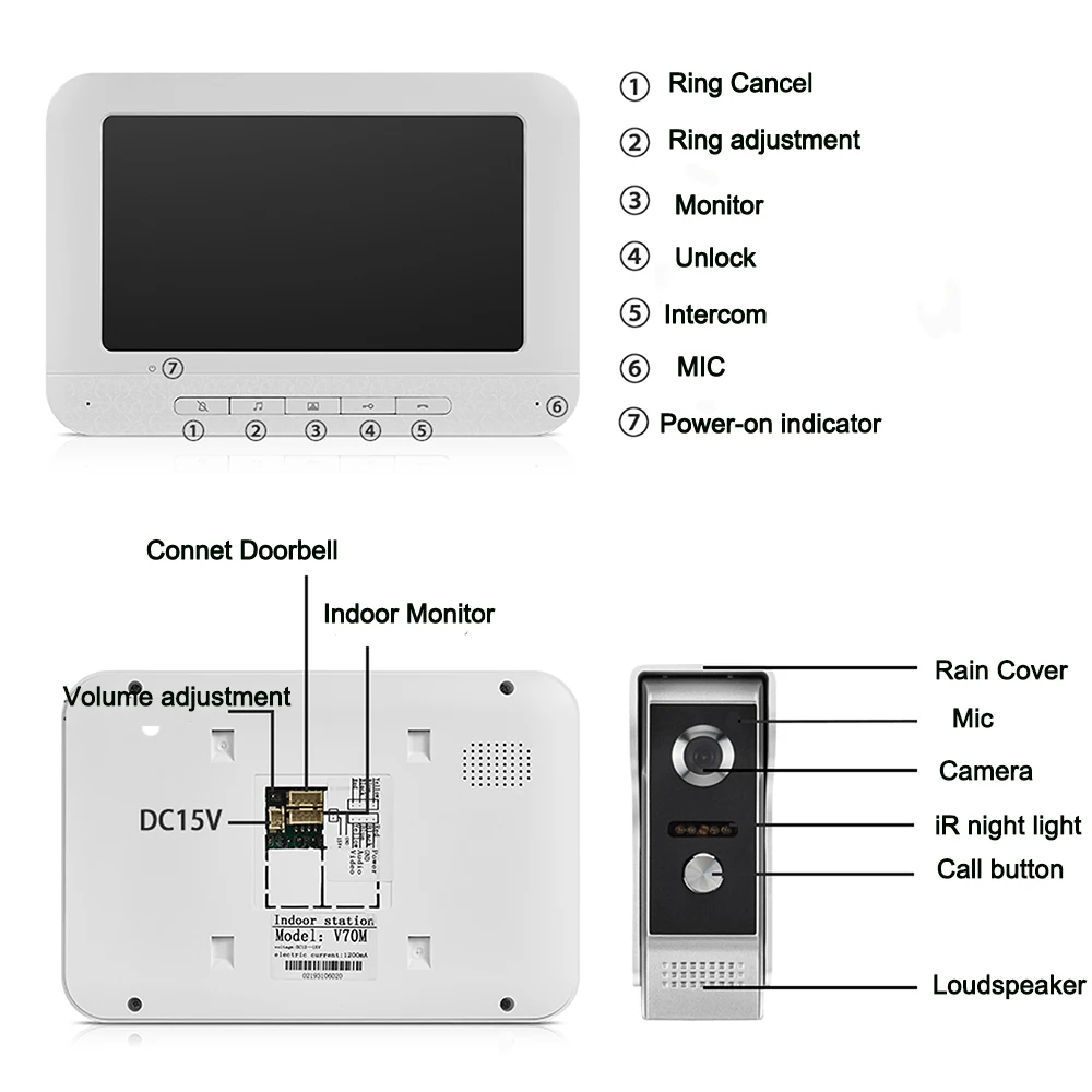 Телефон видео-двери гарантирует, что вы можете видеть и говорить со всеми посетителями, это дополнительный набор глаз, чтобы наблюдать за вашим домом в любое время. Видеодомофон помогает людям, живущим отдельно или маленьким детям. Это лучший подарок для пожилых, детей, родителей, друзей.