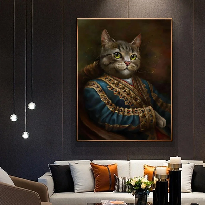 Кот, Президентский одежда живопись на холсте искусство стены благородное животное плакат и принт Ретро картины для гостиной домашний декор