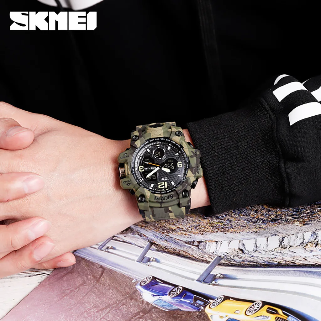 SKMEI мужские спортивные часы с двойным дисплеем Аналоговый Цифровой светодиодный Электронные наручные часы