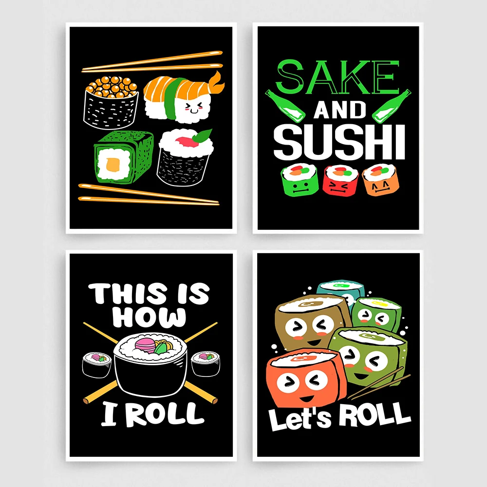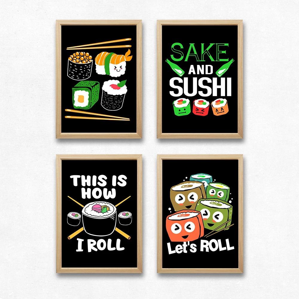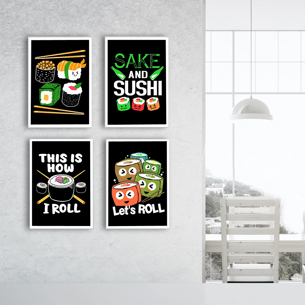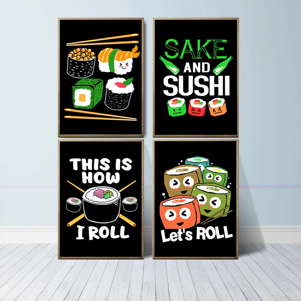 Постеры и принты в скандинавском стиле с изображением еды, суши, маки, риса, Нигири, Картина на холсте, современные настенные картины для кухни, ресторана, домашний декор