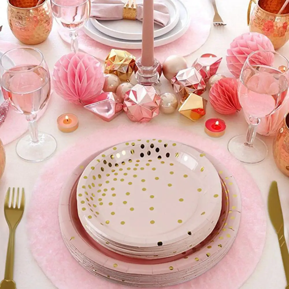 Одноразовая посуда из розового золота с горячим тиснением, тарелка ...