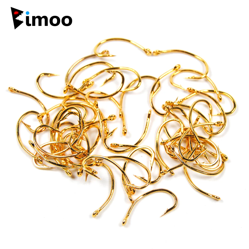 Bimoo 100 шт. #10 #12 #14 #16 золотой цвет Нимфа Скад креветки Pupae личинки Caddis появляется Сухой Мушки Вязание светильник крючки для рыбы