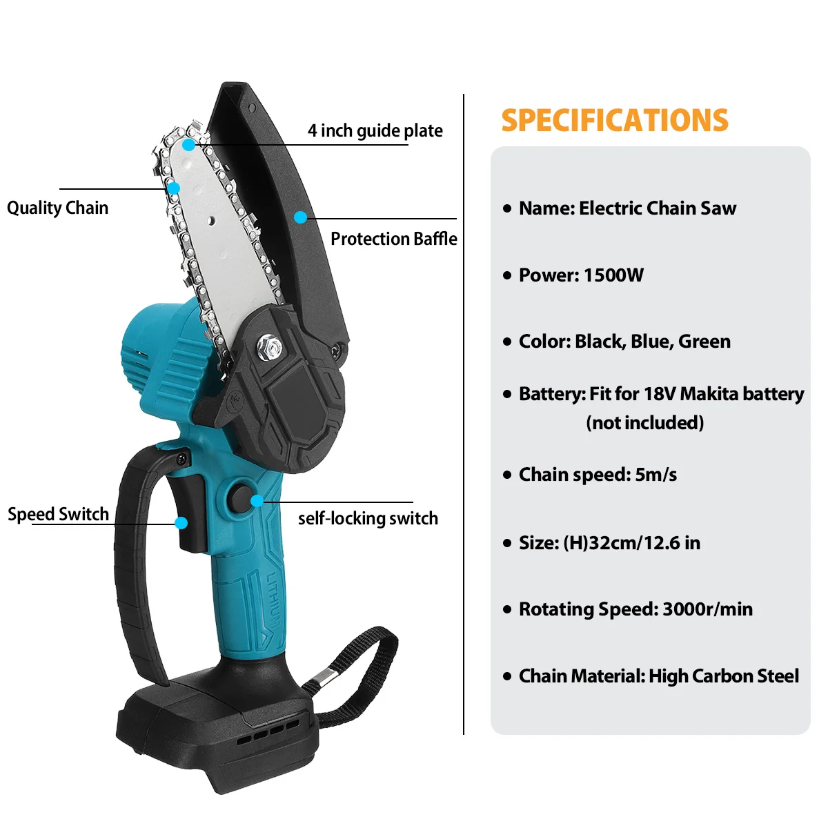 Мини-пила цепная электрическая, 4 дюйма, 1500 Вт, 88VF, с индикатором заряда батареи, для деревообработки Makita 18 в, с европейской вилкой