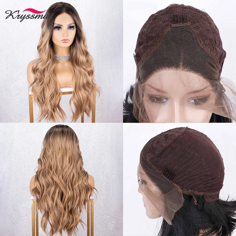 Парик на сетке спереди длинный волнистый блонд Омбре синтетический парик для женщин вечерние термостойкие волосы из волокна натуральные жесткие парики на сетке Новинка 2021