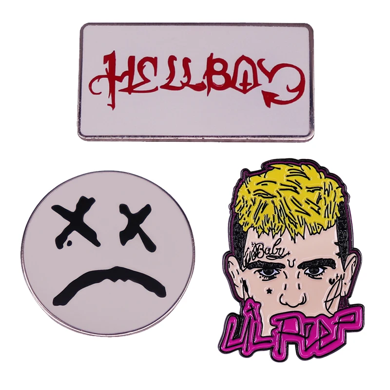 Рэп музыкальная рок-звезды Ангел Ада Хеллбой грустно уход за кожей лица Lil открытым знак Rolling Stone в стиле "хип-хоп", реперские кепки эмалированная брошь-Кнопка ювелирные изделия аксессуары