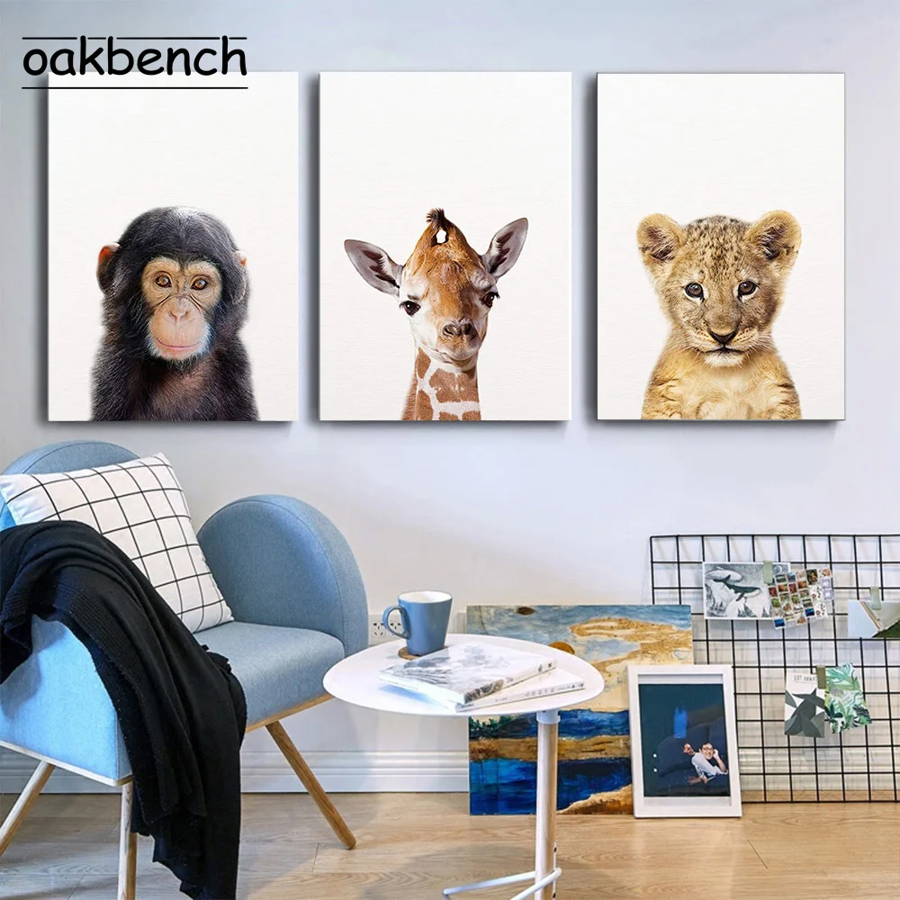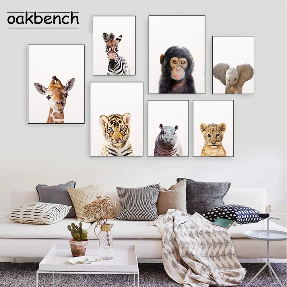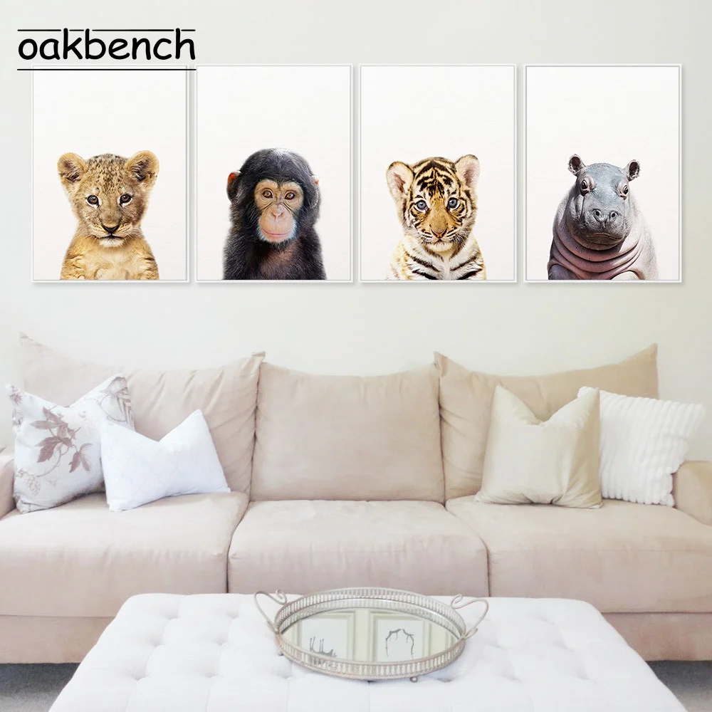 Настенный плакат в виде льва и Тигра для детской комнаты, Современная Картина на холсте с изображением сафари, животных в скандинавском стиле, декор для детской комнаты