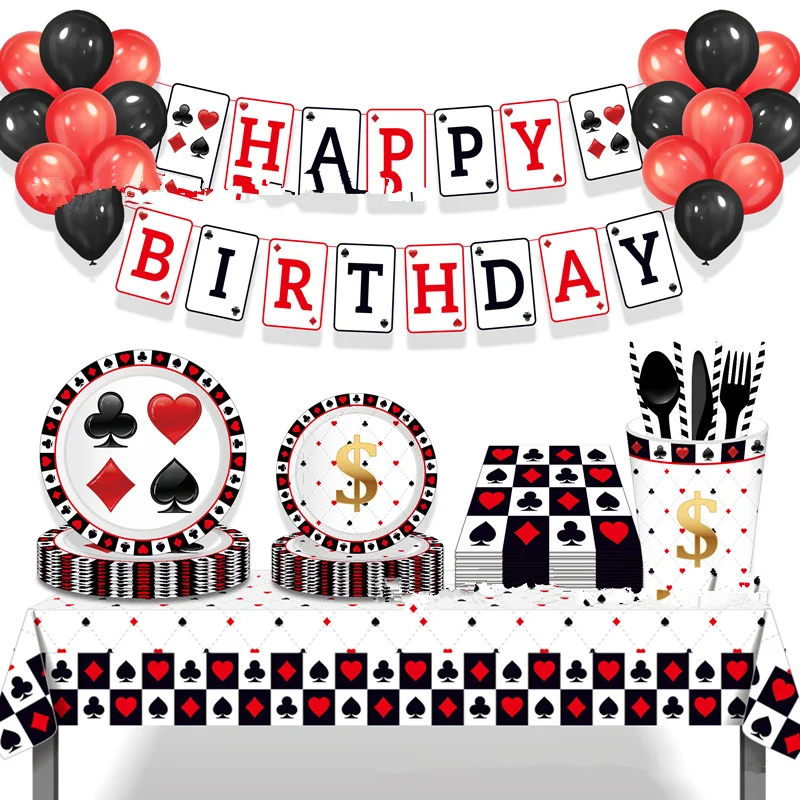 Вечерние украшения для казино, покерная одноразовая посуда, волшебное шоу, вечерние украшения в Лас-Вегасе, девичник, вечерние
