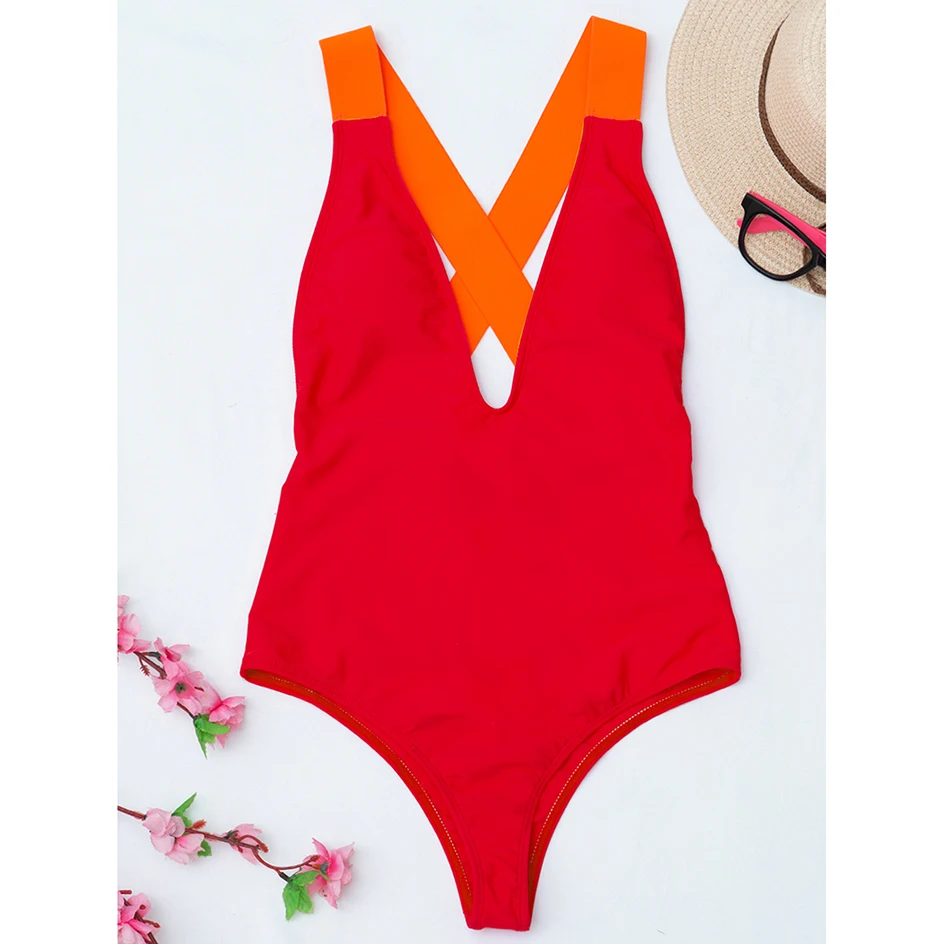 Женский слитный купальник, лето 2021, сексуальный купальник с глубоким V-образным вырезом, бандажный купальник, монокини