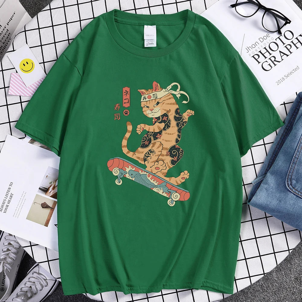 Футболка Catana Play скейтборд Ukiyoe с принтом, футболки большого размера, Модные дышащие мужские футболки, летняя свободная футболка для мужчин