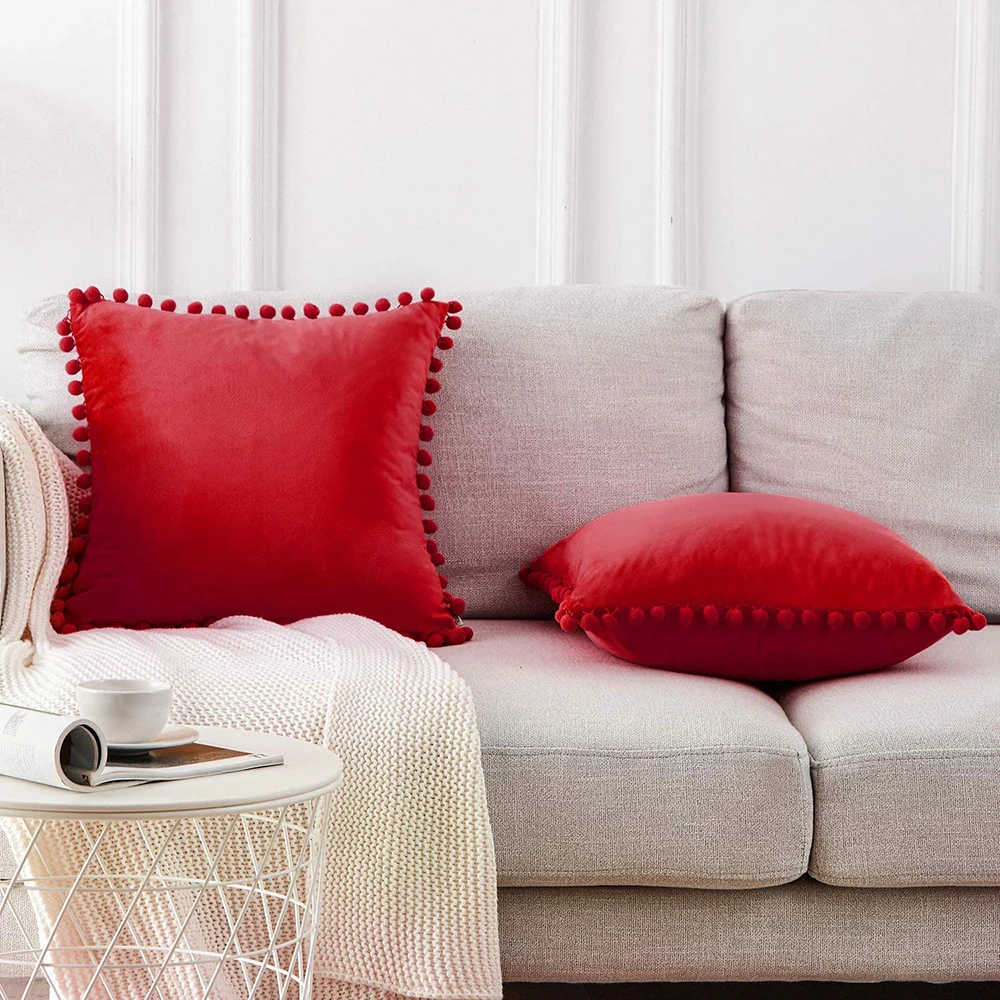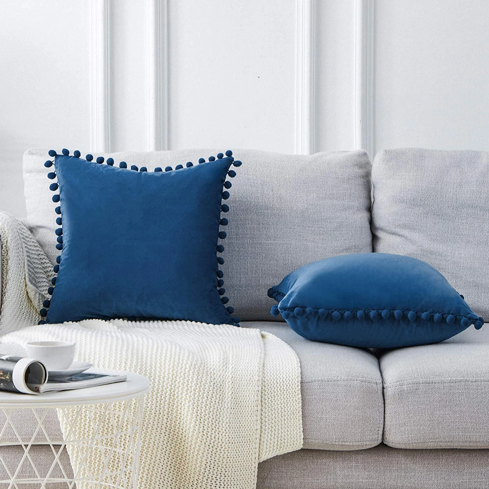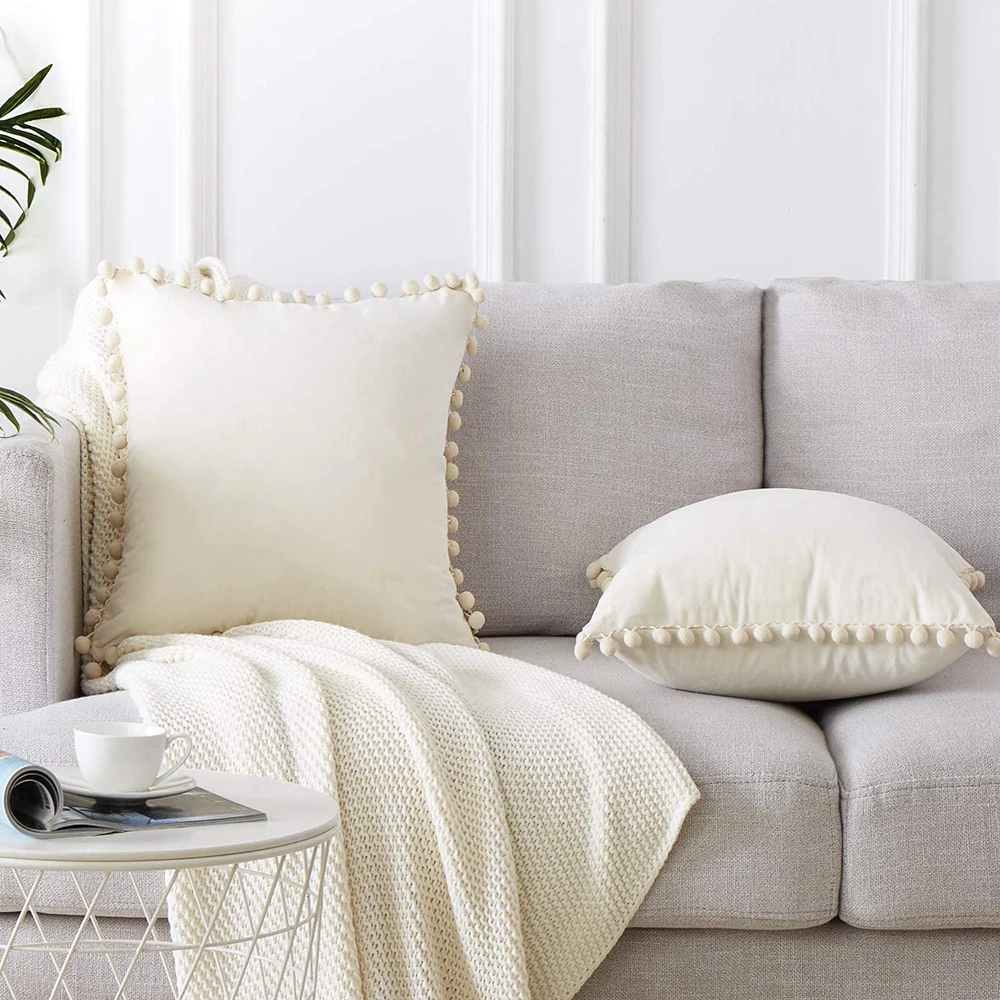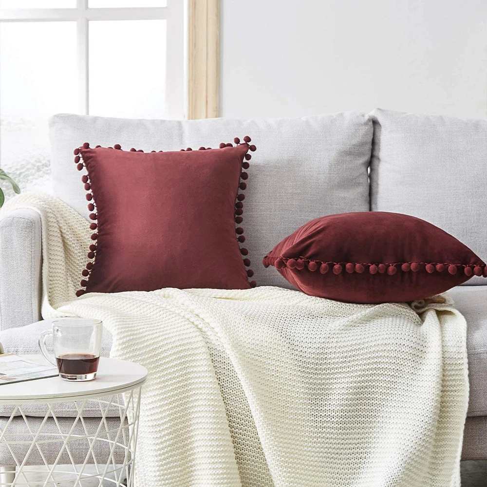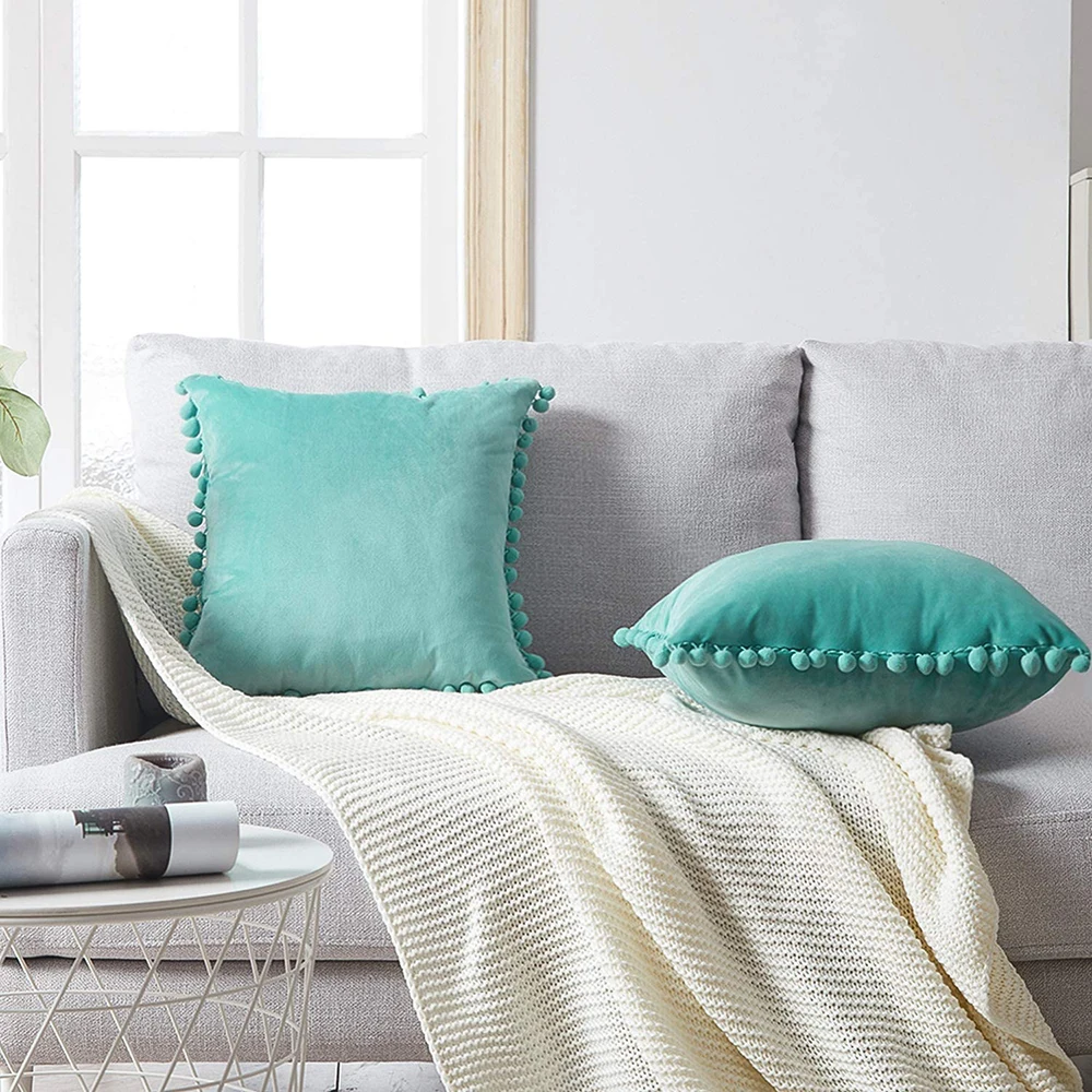 Декоративные наволочки с помпонами, мягкие бархатные наволочки, Квадратные наволочки для дивана, спальни, автомобильного дивана