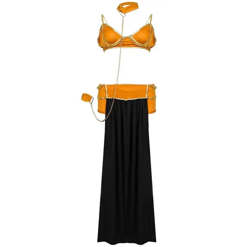 Новое сексуальное платье принцессы для карнавала, арабское сексуальное нижнее белье Leia, костюм раба, платье с золотым бюстгальтером и цепочкой на шею, нарядное платье на Хэллоуин