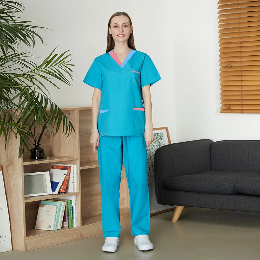 По оптовой цене подходит для мужского и женского пола стоматологическая клиника больница форма v-образный вырез хирургический халат медсестры Стоматологическая униформа для кормления