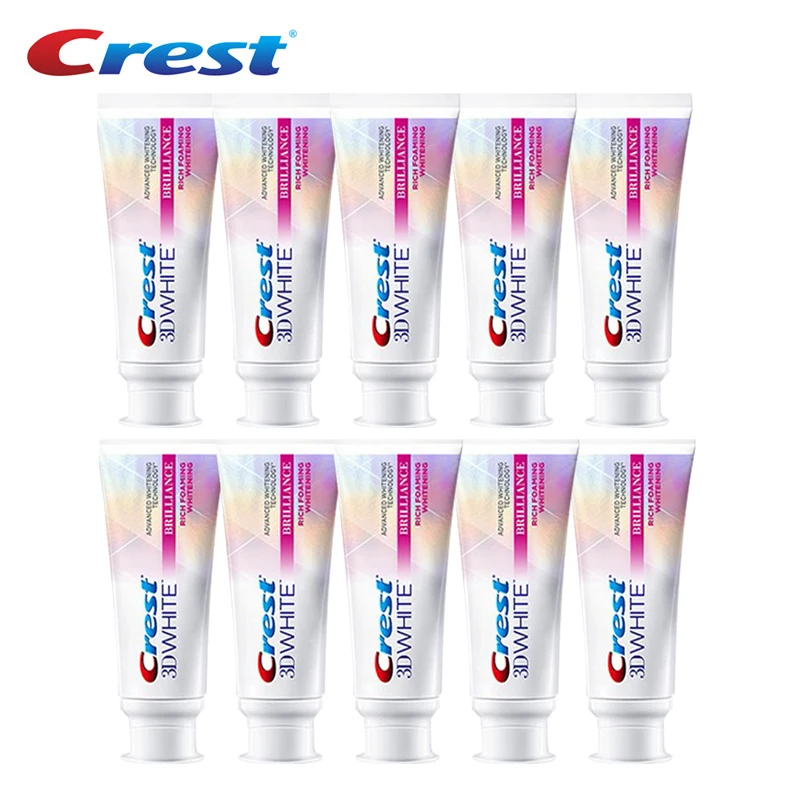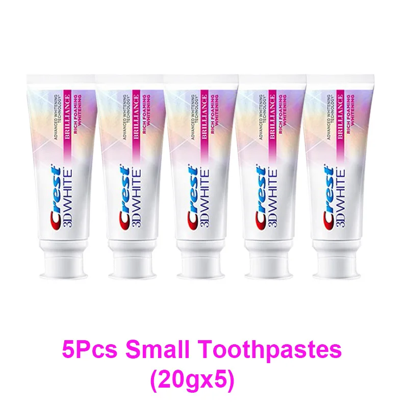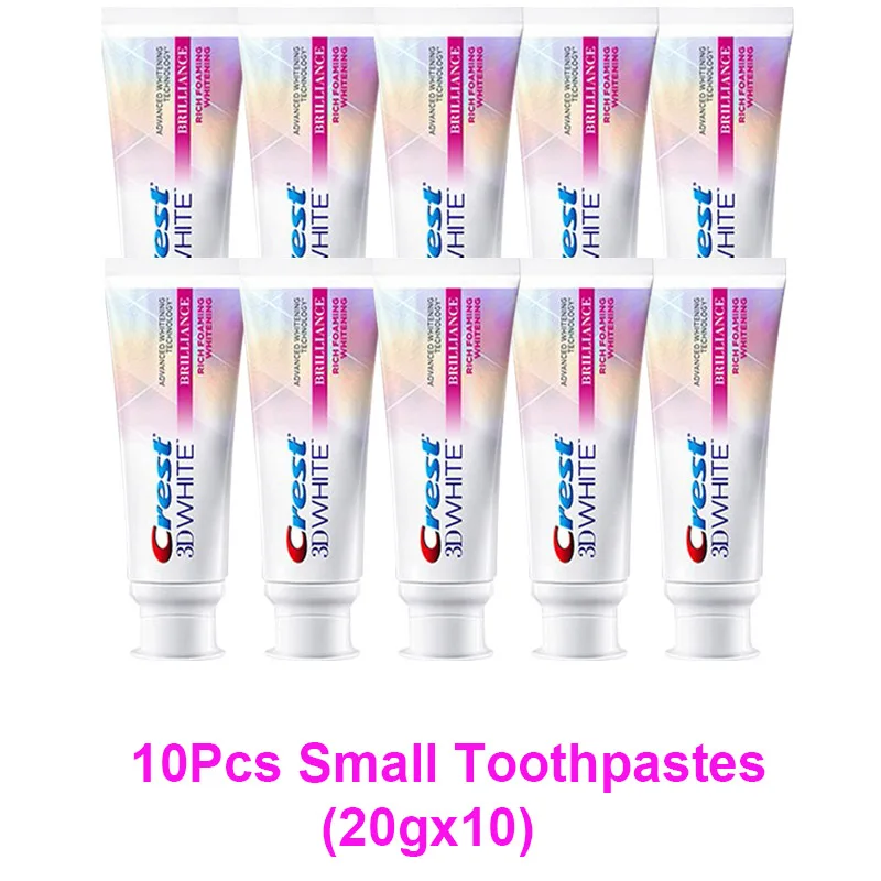 Зубная паста 3D White Crest Brilliance для отбеливания зубов, отбеливающая зубная паста, пена для мусса, с теплым ощущением, маленькие пробные трубки, 20 г, для путешествий